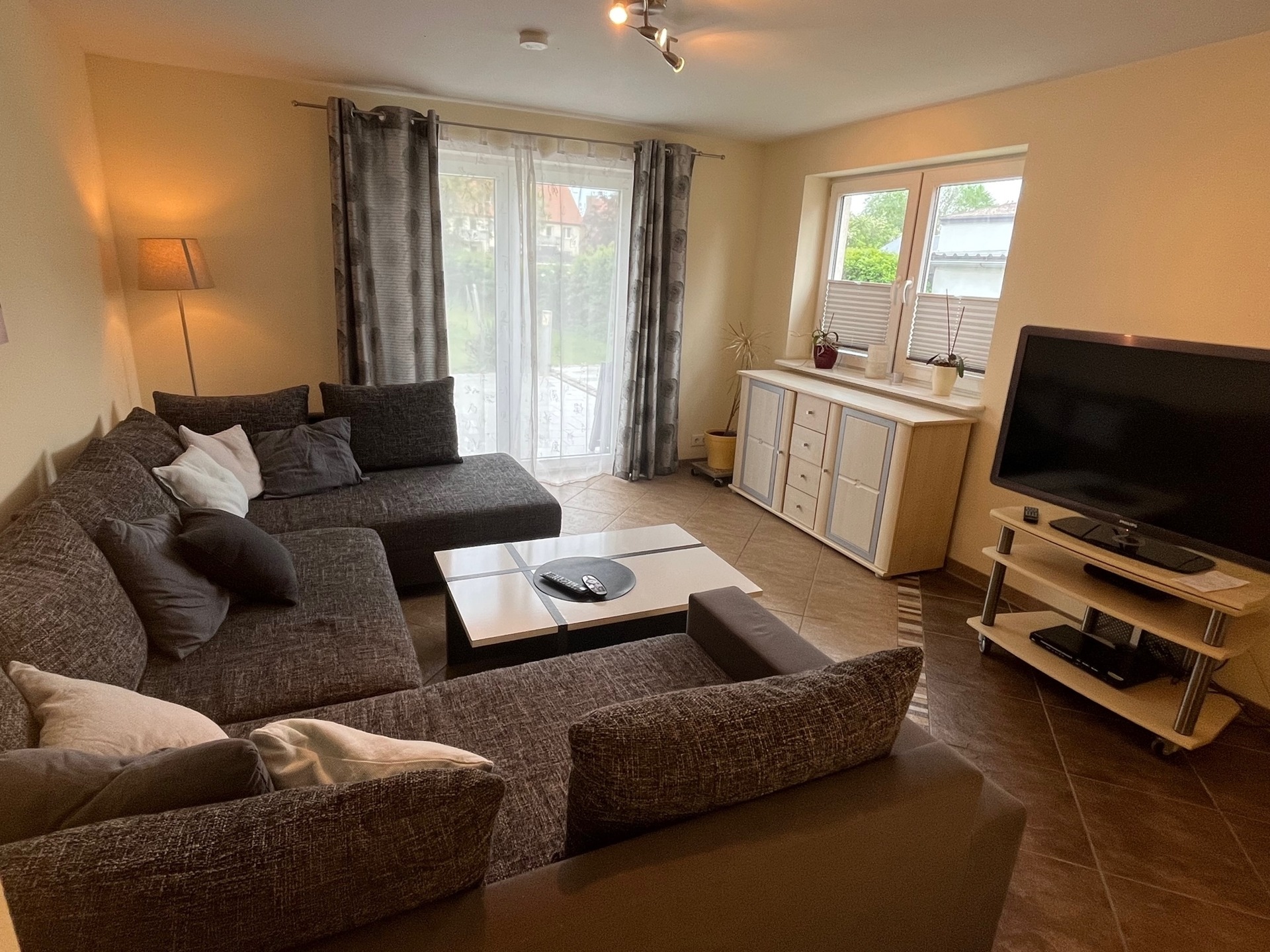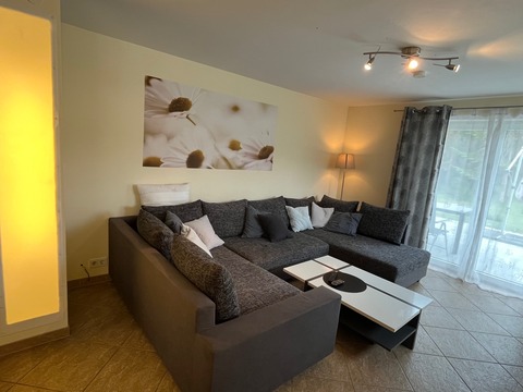 Willkommen in unserer gemütlichen Ferienwohnung. Hier bekommen Sie alles für einen gemütlichen Aufenthalt: Großer moderner Wohnbereich, Essplatz, Schlafplätze und eine gut ausgestattete Küche.